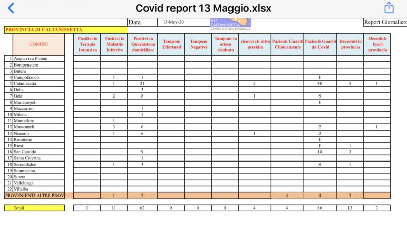 Consueto bollettino dell’Asp di Caltanissetta.