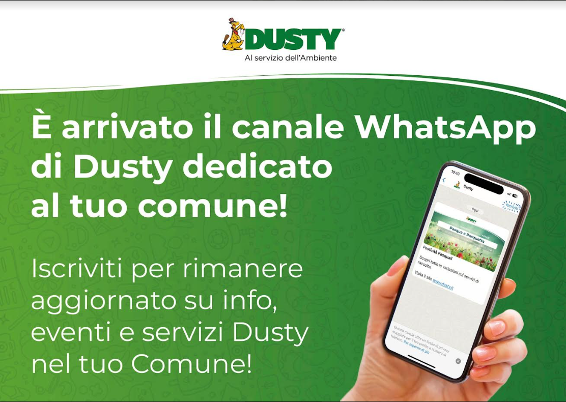 Nuovo canale whatsapp di Dusty dedicato al tuo comune di residenza: news e aggiornamenti in tempo reale